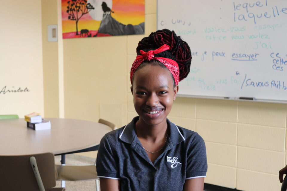 « J’aime le français parce qu’on apprend beaucoup de choses. On s’amuse avec elle, elle est très gentille avec nous », raconte Divine, 16 ans, au sujet de son enseignante. Divine est arrivée du Rwanda il y a environ cinq ans. À l’époque, elle ne parlait pas un seul mot de français. Au Rwanda, elle n’avait pas complété sa quatrième année. « Les mathématiques qu’on nous enseigne ici, je ne les avais pas apprises dans mon pays. Je devais recommencer à zéro, apprendre à compter de 1 à 100 », se souvient-elle.