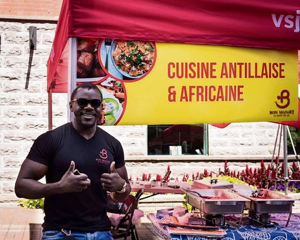 Mélissa Chatelain, d’origine haïtienne, est la cofondatrice et chef cuisinière. Gothard Arsenault, alias “M. Bon Manjjjjjééééé”, le cofondateur. D’origine camerounaise, il vit au Québec depuis 11 ans. Couple dans la vie et en affaires, Mélissa et Gothard résident à Saint-Jérôme depuis trois ans. « Je travaillais dans le domaine de la santé, je suis infirmier. Je suis venu de Montréal à Saint-Jérôme pour faire un baccalauréat à l’UQO et, graduellement, je suis tombé en amour avec la ville », souligne-t-il.