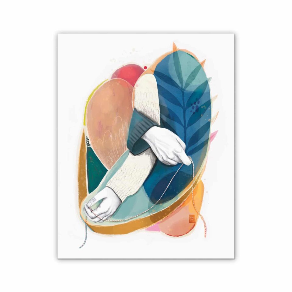 Son approche varie selon les mandats. Lorsqu’elle crée des œuvres destinées à être vendues en impressions décoratives, notamment par l’entreprise montréalaise Sur ton mur, elle se laisse davantage guider par ses propres émotions. Ces illustrations, pensées pour habiller un espace, naissent souvent d’un ressenti personnel. Dans tous les cas, l’émotion reste centrale, mais elle répond alors à celle de l’auteur ou du média.