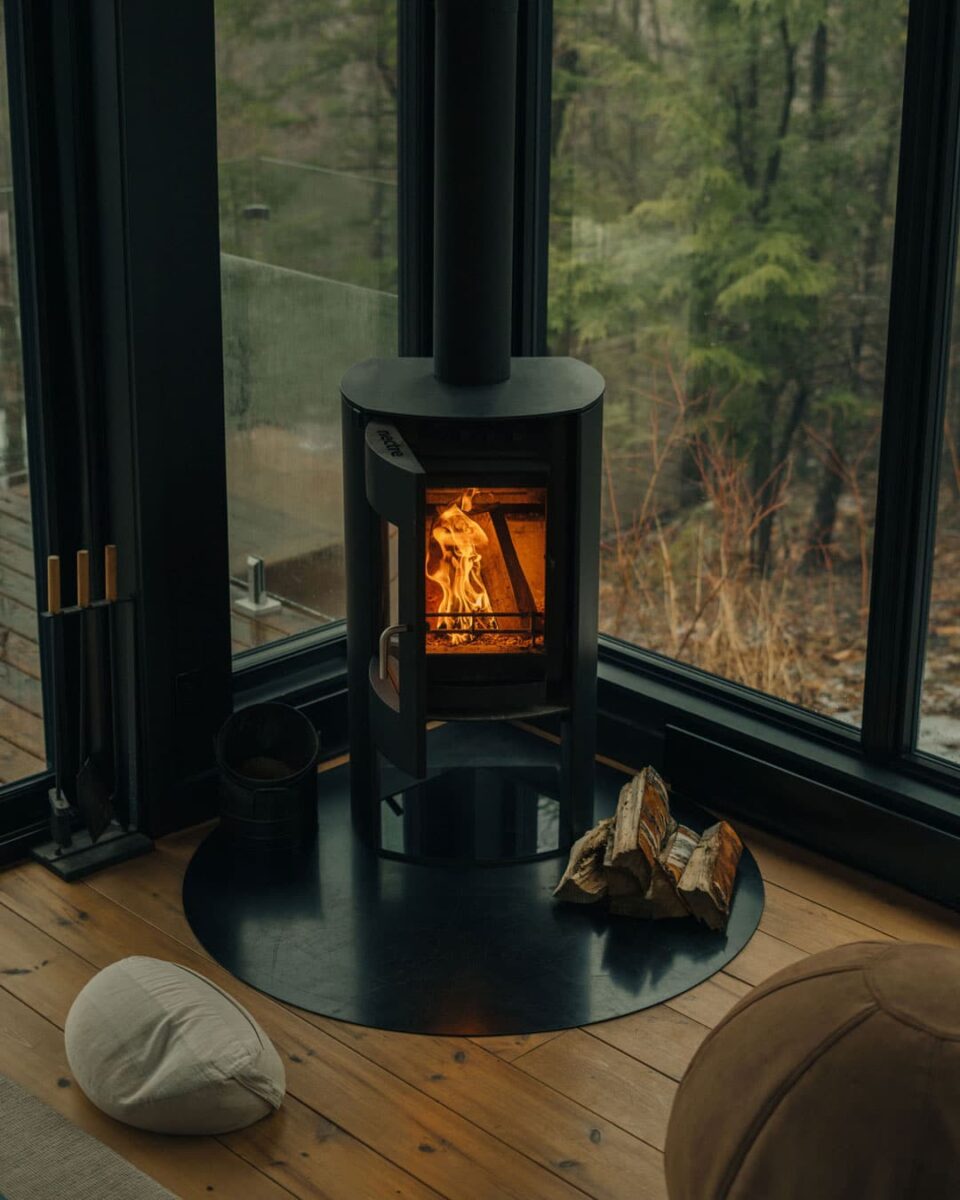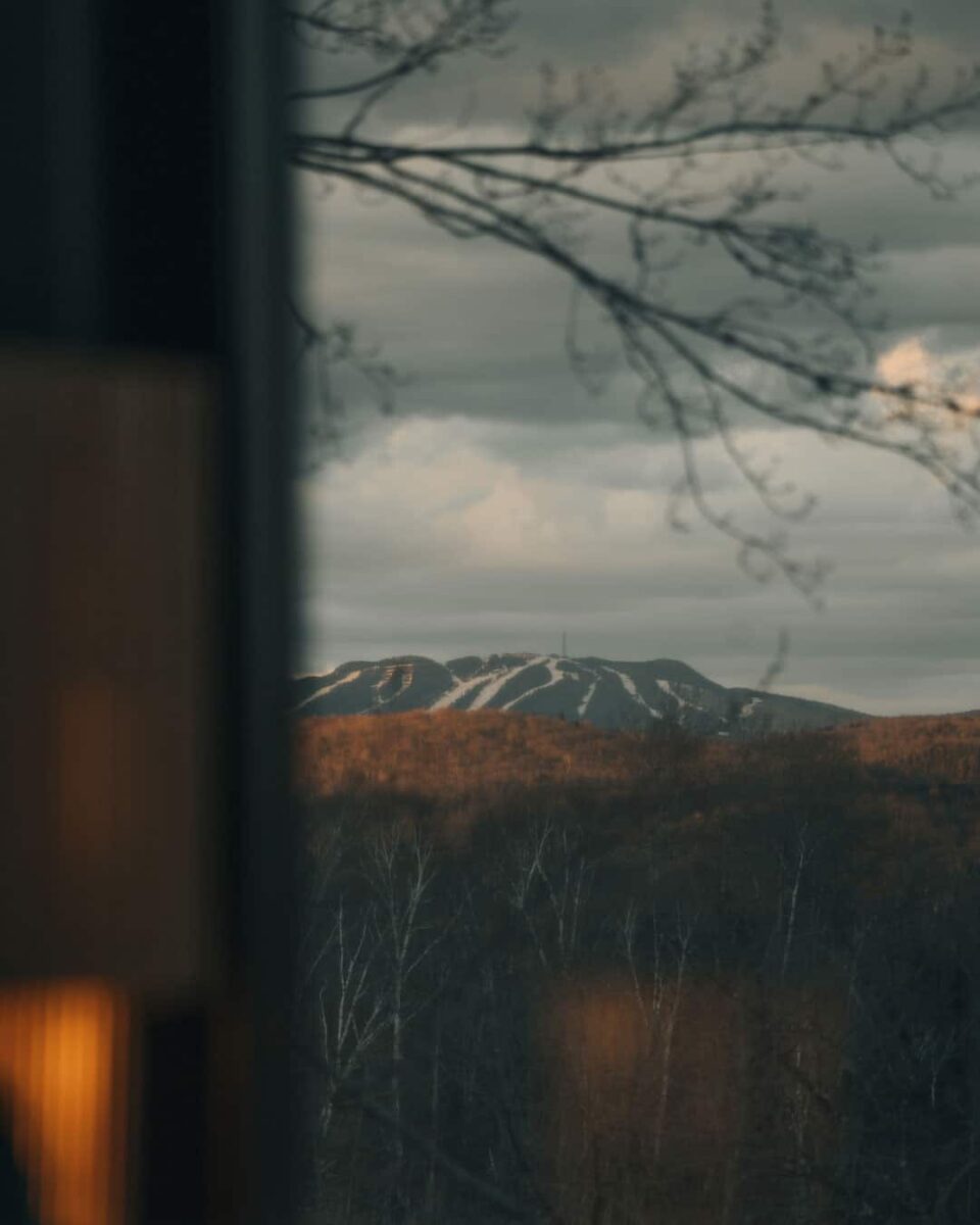 Chaque élément des refuges reflète cette philosophie, que ce soit par les livres et les magazines choisis avec soin sur la table à café, la table tournante pour y faire jouer des vinyles, les meubles japonais des années 70… « C’est très important pour nous que l’espace soit chaleureux, qu’il ait une âme, et qu’il ne soit jamais froid, souligne Emily. Vert olive, terracotta, Burgundy : ces couleurs qu’on retrouve dans les refuges nous font sentir plus connectés à la Terre et à la nature. »