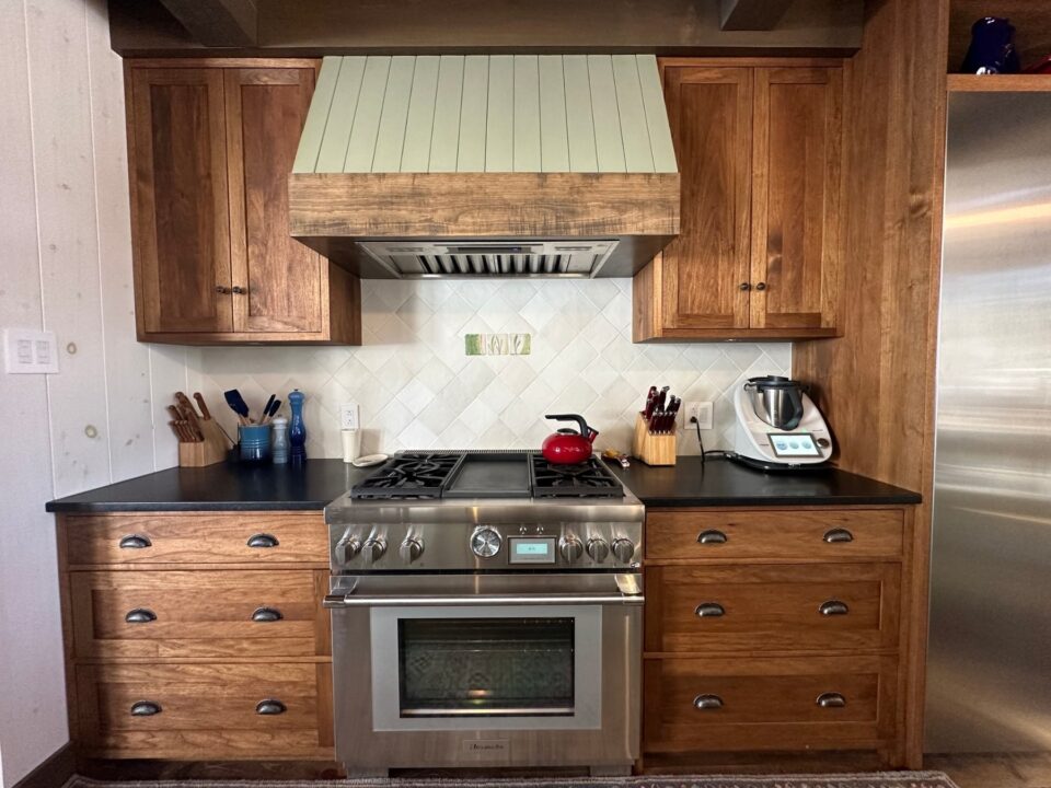 M. Baron se spécialise beaucoup dans la finition. Il utilise entre autres de la peinture au lait, composée d’ingrédients 100 % naturels, pour créer un fini mat, authentique et champêtre. Elle permet de reproduire les couleurs de mobiliers anciens. « Ça met de la vie et on s’éloigne des cuisines toutes blanches. » Par ailleurs, chaque couleur sortira différente sur chaque essence de bois. M. Baron travaille autant avec du pin, du noyer, du chêne que du cerisier.