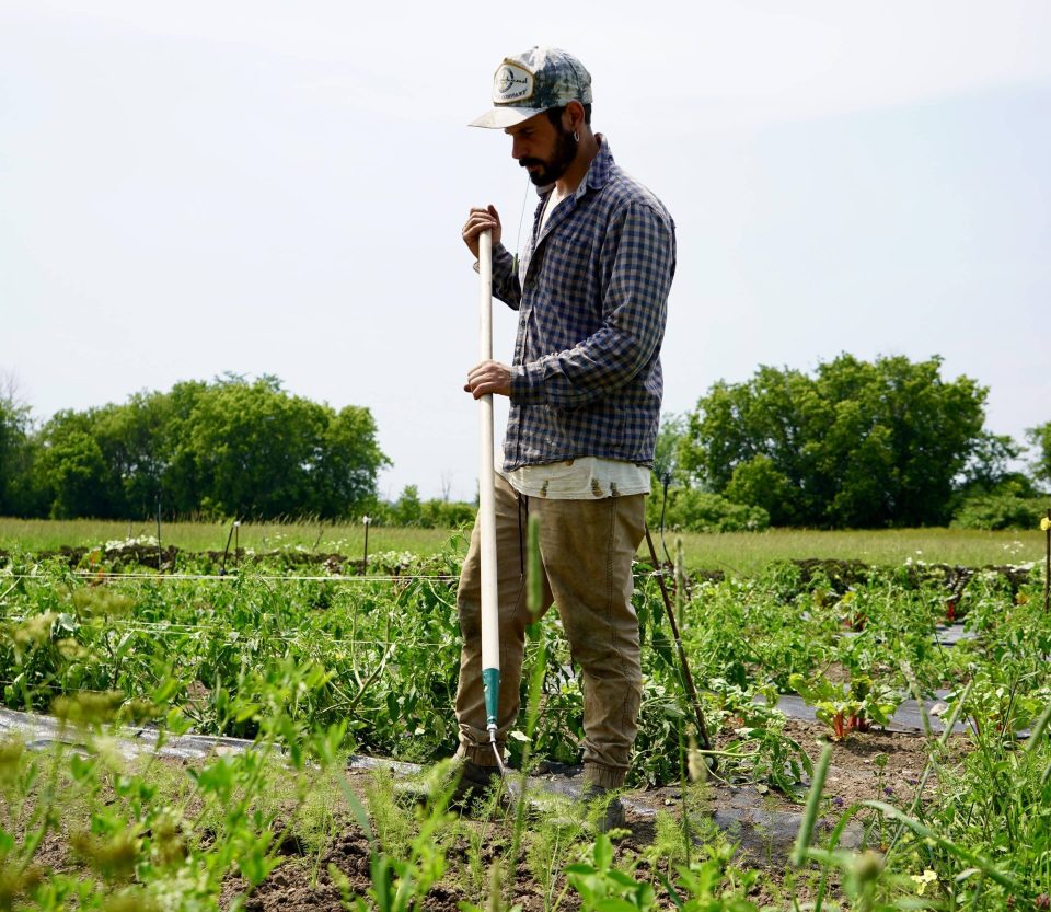 Léandre a baigné longtemps dans le domaine de la restauration en tant que cuisinier. Il est donc habitué à des conditions de travail difficiles. « Je travaillais dans un restaurant qui utilisait beaucoup des produits locaux. Ça m’a ouvert les yeux sur la qualité des produits des travailleurs agricoles d’ici. Je voulais être de ce côté là de la chaîne », raconte-t-il. Ainsi, souhaitant se rapprocher de la production de légumes et de la terre, il a quitté le milieu pour aller travailler à la Ferme des Quatre-Temps. Celle-ci forme des agriculteurs selon les principes de l’agriculture « biointensive ». Il s’agit d’un système de culture permettant d’obtenir plus de rendement sur des petites surfaces.
