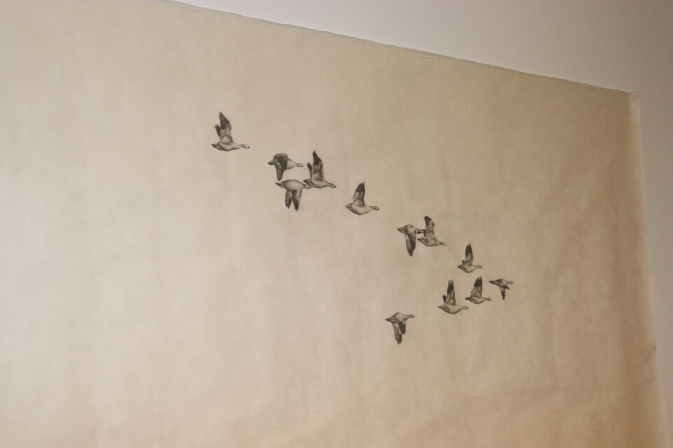 Ces trois artistes s’expriment dans la douceur et la poésie. Manon Regimbald souhaitait justement créer un espace réconfortant, en contraste avec une réalité souvent épeurante et chaotique. « Je voulais que les gens ressentent la douceur. Je voulais qu’ils puissent se déposer là-dedans », explique la directrice générale. Sa mission semble d’ailleurs remplie, si on se fie à la réaction du public. Les visiteurs peuvent rester jusqu’à une heure dans la galerie, à regarder les œuvres et à se ressourcer, raconte Manon Regimbald.