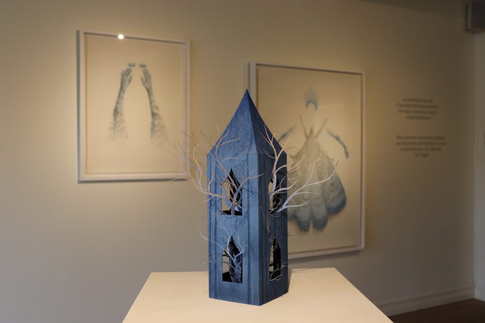 L’exposition Onigraphie de Véronique La Perrière M. est présentée pour la toute première fois, à Val-David. Ses œuvres relient l’humain aux papillons, aux racines et aux plantes, dans une forme fantaisiste qui rappelle les rêves. À ce sujet, l’artiste affirme qu’elle « souhaite réfléchir à la manière dont les rêves, ces intercesseurs qui veillent en nous et sur nous, peuvent nous aider à entreprendre des choses extraordinaires et à faire émerger la vision de futurs inespérés. » Native de Montréal, Véronique est installée à Val-David depuis quelques années. Ses œuvres font partie de plusieurs collections en Europe et en Amérique du Nord.