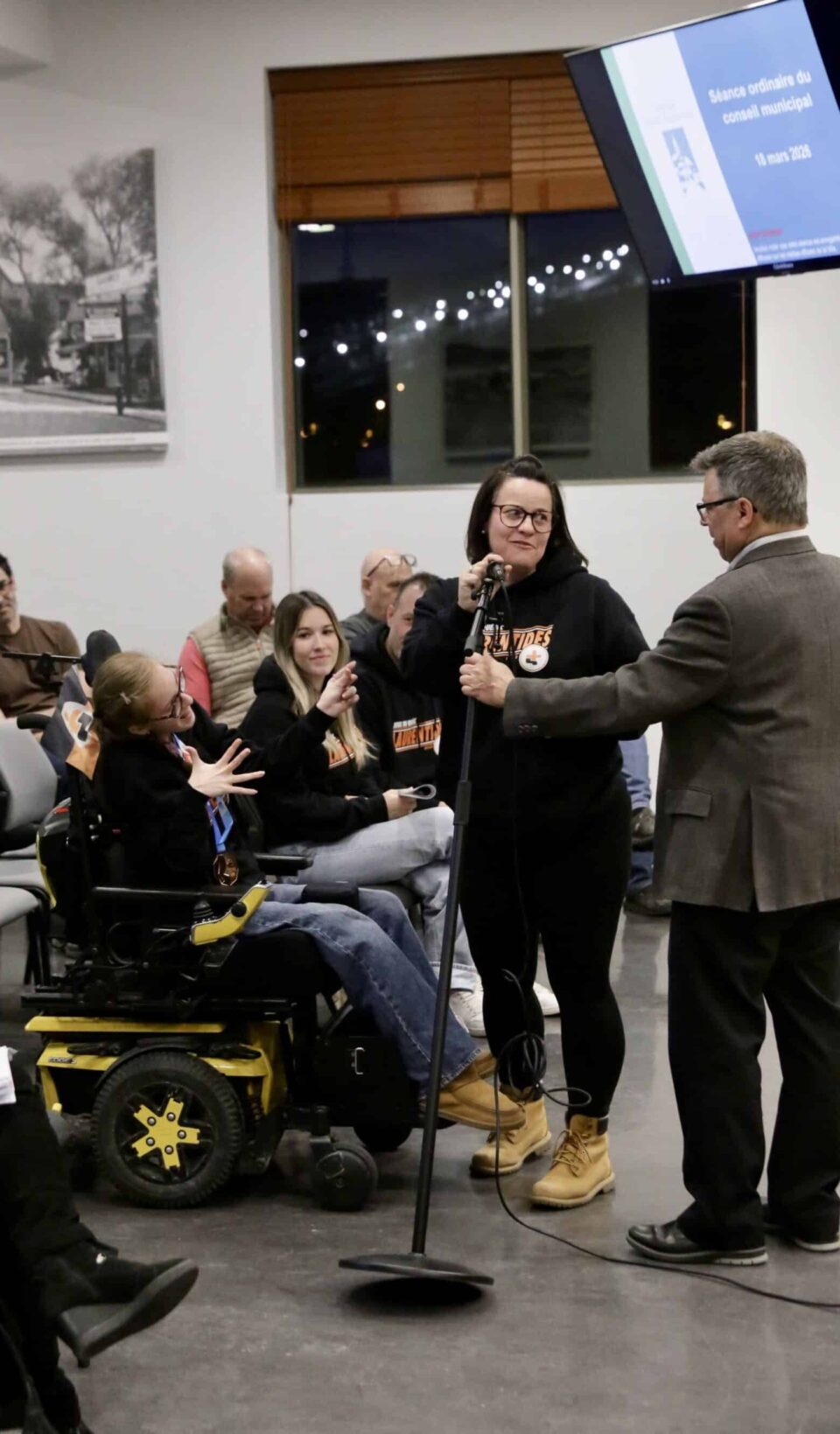 La séance a débuté par un moment rassembleur avec l’hommage rendu à l’athlète locale médaillée aux Jeux du Québec, Mia Dufour. « Toutes nos félicitations pour cette grande victoire », a lancé le conseiller Luc Lebanc à la joueuse de boccia.
