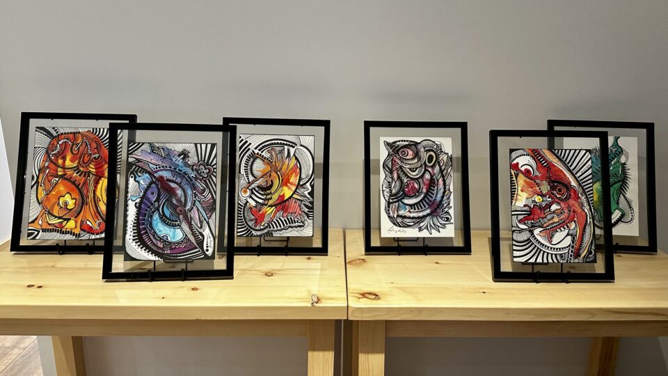 Son parcours explique aussi cette tension. Du pastel sec aux encres sur bois, elle a déjà connu une reconnaissance locale. « J’ai fait plusieurs expos ici. Ça a vraiment bien marché. »