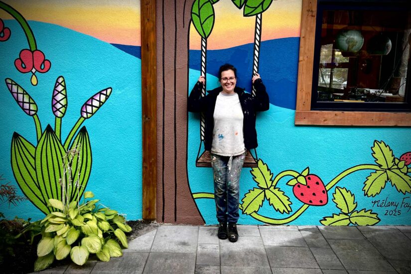 Pour l’artiste, cette murale est aussi une manière de faire rayonner Sainte-Marguerite. « Le Café O’ Marguerites est une coopérative qui vend des fruits et des légumes bios, qui encourage les producteurs et les artistes locaux. C’est le coeur du village. Pour moi, c’est aussi une façon de me faire connaître et de rencontrer des gens », conclut-elle.