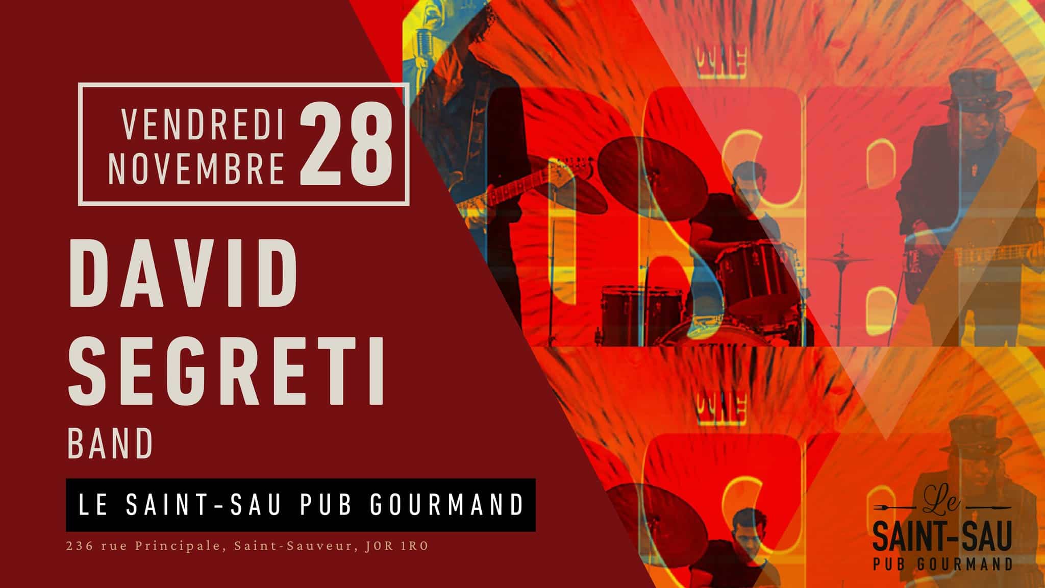 « Préparez-vous pour une soirée de pur blues rock avec le David Segreti Band, un groupe québécois au son électrisant ! Entre riffs puissants, groove contagieux et énergie brute, ils vous feront vibrer du début à la fin. »