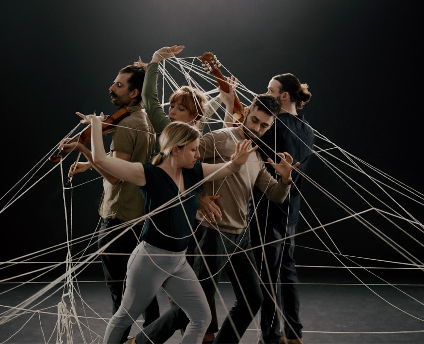 « L’écho des racines est un projet chorégraphique créé par La Sporée/Sarah Bronsard issu d’un dialogue fécond entre le flamenco et la gigue québécoise. Rassemblant huit danseurs et musiciens chevronnés, l’oeuvre explore les liens qui unissent de manière implicite ces deux traditions, tout en questionnant les limites qui les définissent dans le temps et l’espace. »