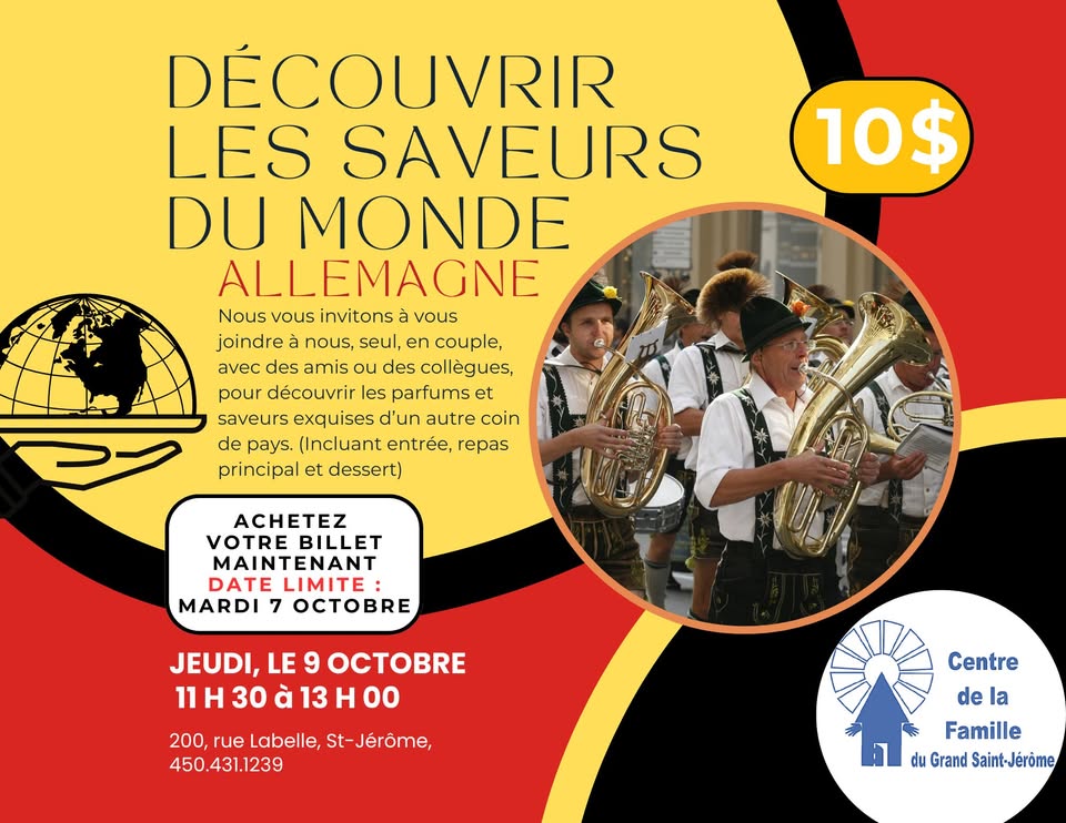 « Un repas offert en trois services à tout petit prix. Activité ouverte à toutes et tous. Venez entre amis, en couple, en solo ou avec vos collègues de travail. Places limitées. »