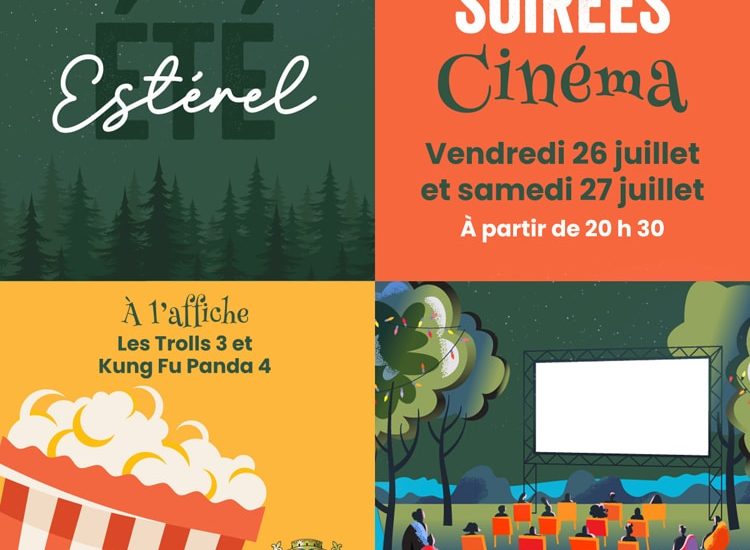 Les 26 et 27 juillet prochains, des soirées cinéma sont organisées au parc Thomas-Louis-Simard d’Estérel dès 20 h 30. Les films présentés sont Les Trolls 3 et Kung Fu Panda 4. « Nous fournissons le popcorn, vous devez apporter vos boissons, chaises et couvertures…c’est un rendez-vous. » Pour plus de détails, visitez le site web de la Ville d’Estérel.