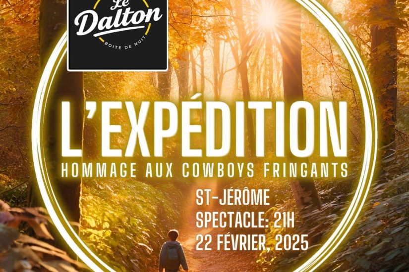 Où : Bar Le Dalton, Saint-Jérôme Quand : 22 février de 20 h 30 à 22 h 30 « Dans un voyage musical à travers les émotions, les convictions et l’esprit de festivité, suivez l’odyssée des Cowboys Fringants via L’Expédition ! Avec des musiciens passionnés de ce grand groupe québécois, violon, harmonica, guitares, percussions, plusieurs voix et accordéon, tout est en place pour une Histoire Ben Fringante ! »