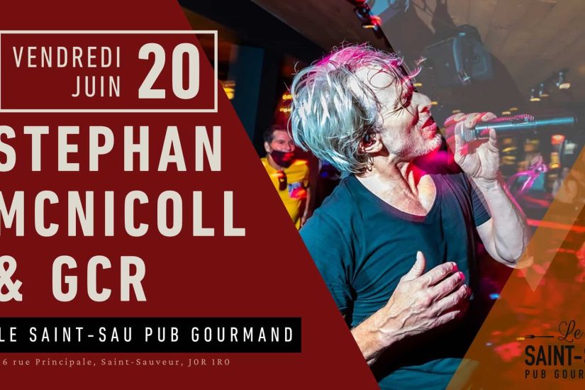 Où : Saint-Sau Pub Gourmand, Saint-Sauveur Quand : 20 juin à 21 h « Stephan McNicoll & GCR, un groupe des Laurentides qui a été formé uniquement pour le plaisir de jouer du rock classique et du blues. »