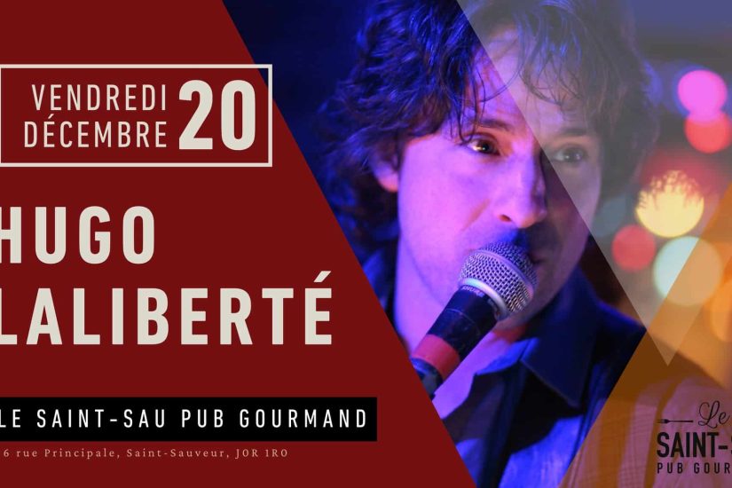 L’artiste Hugo Laliberté 12 décembre dès 19 h 30 Saint-Sau Pub Gourmand, Saint-Sauveur « Réservez vos places dès maintenant, c’est un week-end à ne pas manquer ! »