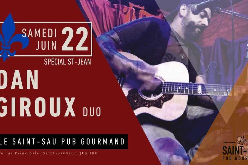 Le Dan Giroux duo est au Saint-Sau Pub Gourmand le 22 juin dès 21 h 30. « Ne manquez pas cette occasion de festoyer dans la bonne humeur et le plaisir de la musique ! » Pour tous les détails, visitez la page Facebook du Saint-Sau Pub Gourmand.
