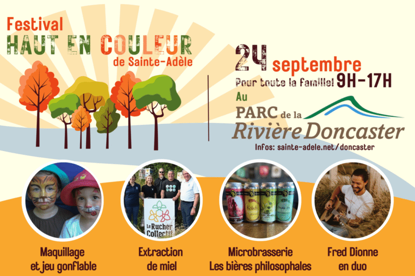 Le 24 septembre prochain, la Chambre de commerce de Sainte-Adèle organise une journée de festivités au Parc de la Rivière Doncaster pour souligner la saison des couleurs ! Lors de cette journée, l’accès au parc sera gratuit pour les citoyens de Sainte-Adèle. Plusieurs activités sont prévues, comme du maquillage pour enfants et le lancer de la hache (version gonflable !) Puis, l’Association de la rivière Doncaster sera sur place pour vous en apprendre plus sur la flore,…