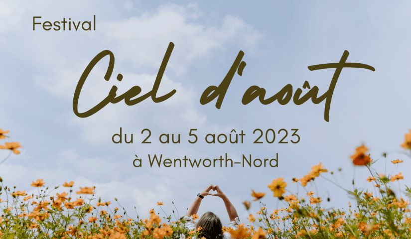 La Table de concertation des arts et de la culture de Wentworth-Nord (TCACWN) présentera la toute première édition de son Festival Ciel d’août du 2 au 5 août prochain ! Il s’agit d’un festival concentré sur l’art du textile. Il y aura une série d’ateliers qui vous permettrons de découvrir et d’expérimenter cette forme d’art ! Le Festival Ciel d’août sera accessible aux citoyens de tous âges. Le festival aura donc lieu dans la Municipalité de Wentworth-Nord…